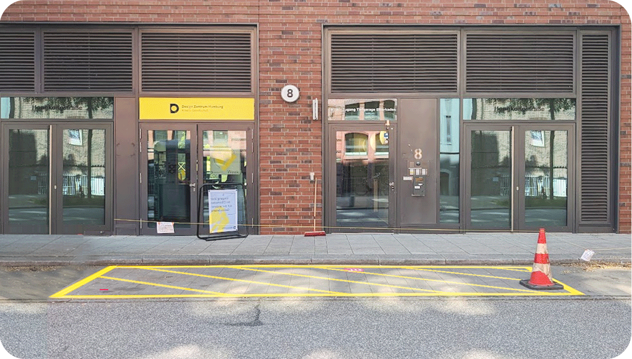 In the Corona Pandemic it was necessary to keep distance to one another; 1.5 Meters minimum. To enable this, and still allow for some public life we developed a Graphic Marker System that got painted on the floor. The idea was to apply a GRID on the street that just indicates 1.5 Meters. Much to our joy we discovered that people stick to signs and markers subconsciously.